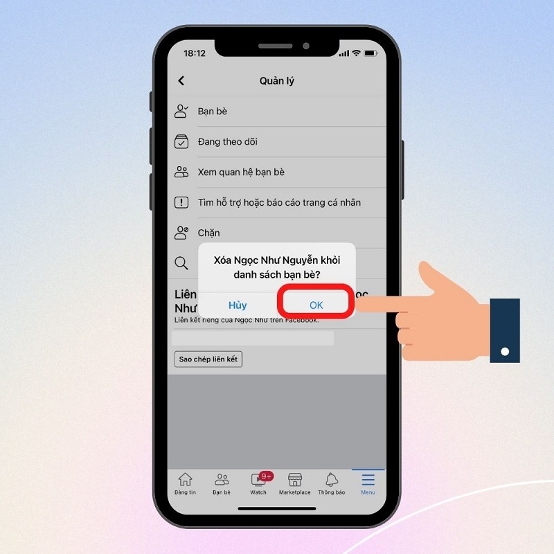 Bước 6: Cuối cùng, bạn nhấn nút Ok để xác nhận lại hành động muốn hủy kết bạn là xong.