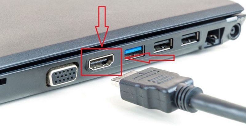 Bước 1: Cắm một đầu cáp HDMI vào cổng HDMI trên laptop, đầu còn lại vào cổng HDMI trên tivi (thường ghi HDMI 1, HDMI 2…).