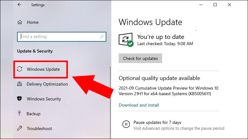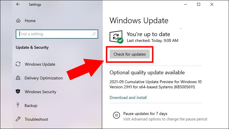 Bước 1: Mở Settings > Windows Update > Check for updates.