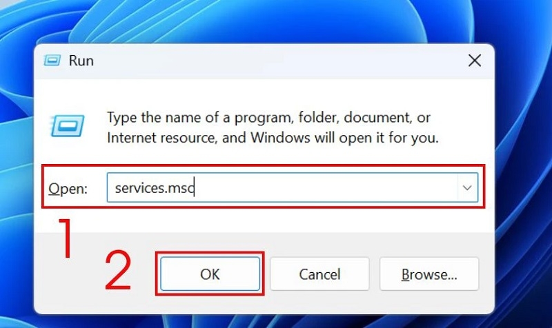 Bước 1: Nhấn phím Windows + R, gõ "services.msc" và Enter.