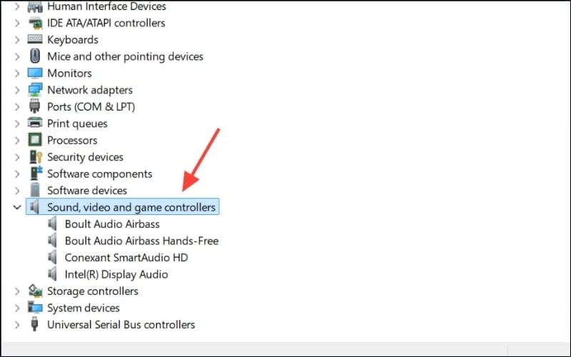 Bước 2: Mở rộng phần Sound, video and game controllers.