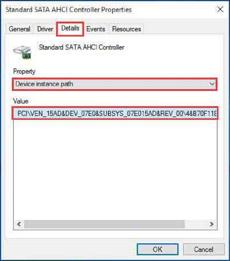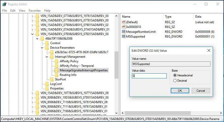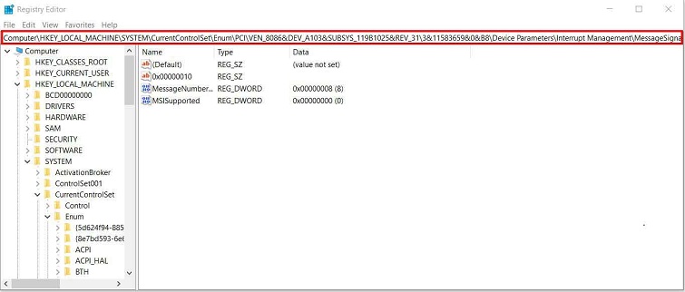 HKEY_LOCAL_MACHINESystemCurrentControlSetEnumPCI<AHCI Controller>Device ParametersInterrupt ManagementMessageSignaledInterruptProperties