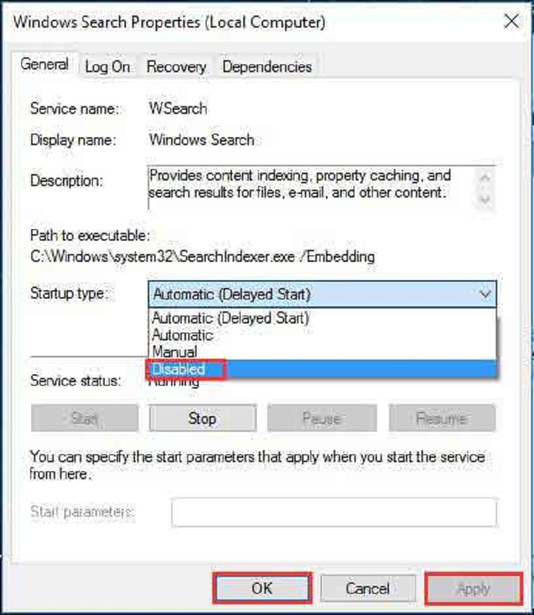 - Cách 3: Vô hiệu hóa Windows Search