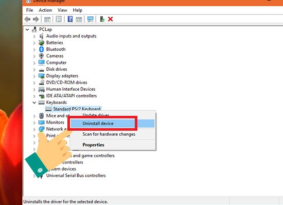 - Bước 3: Nhấn chuột phải vào mục keyboard, sau đó click chọn Uninstall device