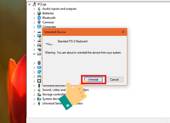 - Bước 4: Nhấn chọn Uninstall để xác nhận. Sau cùng, bạn hãy tiến hành khởi động lại máy tính để hoàn thành việc khóa bàn phím laptop nhé.