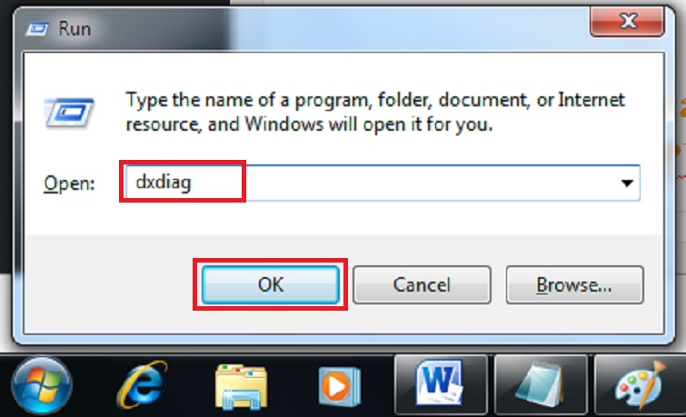- Bước 2: Gõ lệnh “dxdiag” vào ô cần tìm rồi nhấn OK.