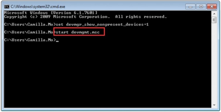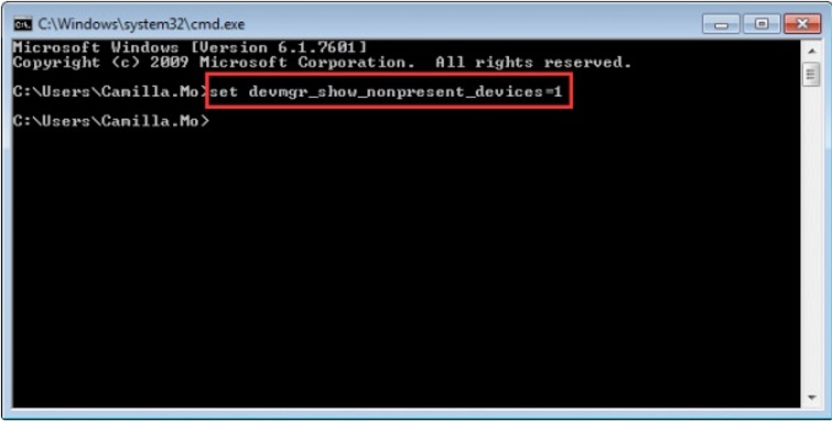 Bước 2: Trong Command Prompt, bạn gõ vào dòng lệnh devmgr_show_nonpresent_devices = 1 rồi nhấn phím Enter.