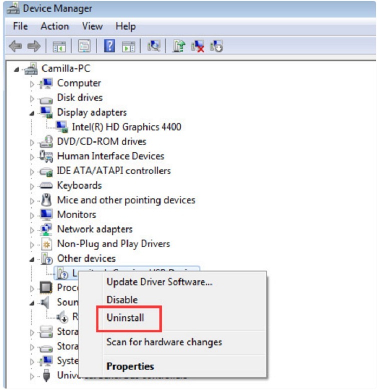 Để gỡ cài đặt thiết bị, bạn chỉ cần nhấp chuột phải vào tên thiết bị và chọn 'Uninstall' từ menu ngữ cảnh.