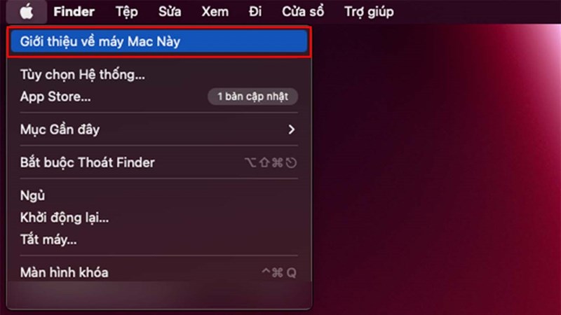 Bước 1: Click biểu tượng Apple ở góc trên trái → About This Mac.