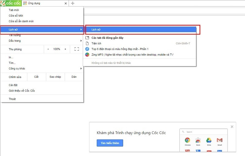 Kiểm Tra Lịch Sử Trên Cốc Cốc