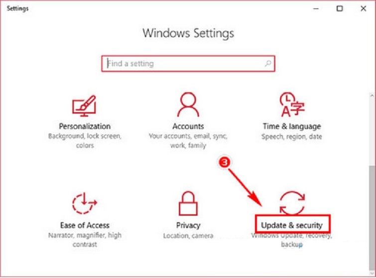 Chọn mục "Update & Security"
