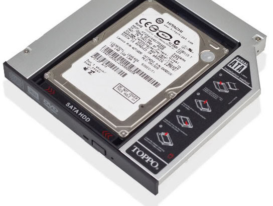 Đối với các dòng laptop chỉ có một khe cắm ổ cứng, giải pháp tốt nhất cho những người có nhu cầu gắn thêm một ổ HDD hoặc SSD là sử dụng ổ đĩa quanh đây. Phương pháp này đem lại sự tiện lợi và có giá thành phải chăng. Đơn giản chỉ cần mua một thiết bị gọi là Caddy Bay, bạn có thể dễ dàng nâng cấp dung lượng lưu trữ của laptop mà không cần phải mua một laptop mới.