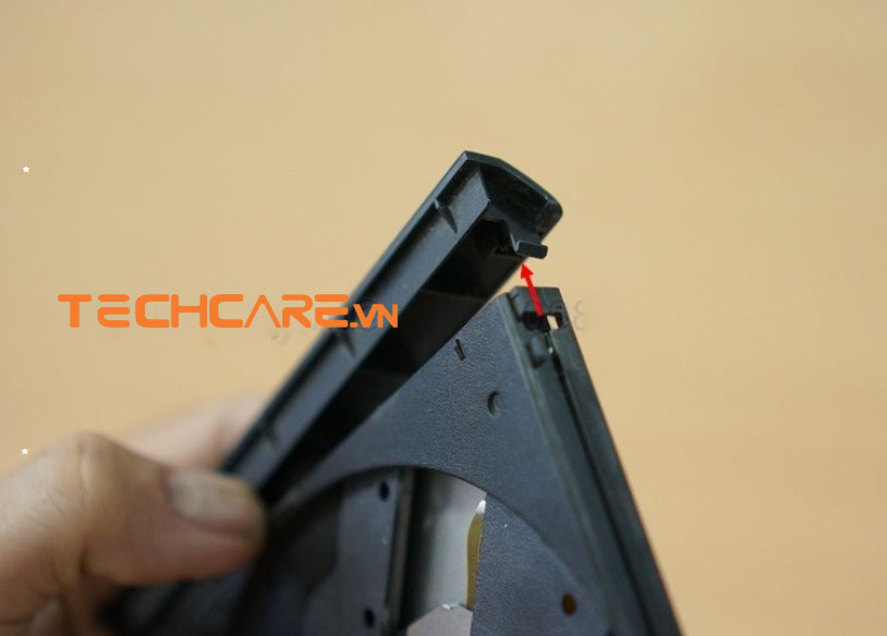 Để tháo mặt nạ DVD ra bạn nhìn hai bên góc có cái gàm, hình dưới là ngàm bên phải