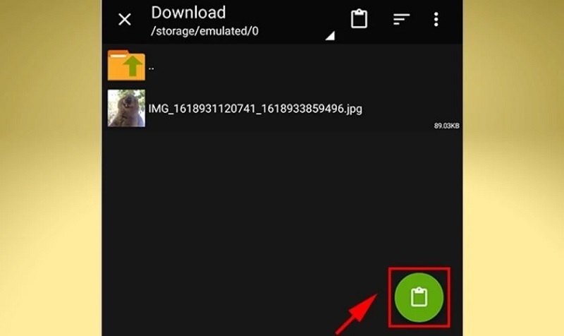 Bước 8: Cuối cùng, bạn nhấn vào biểu tượng Dán ở cửa sổ Download để quá trình lấy lại ảnh đã xoá trên zalo bằng ứng dụng ZArchiver được hoàn tất.