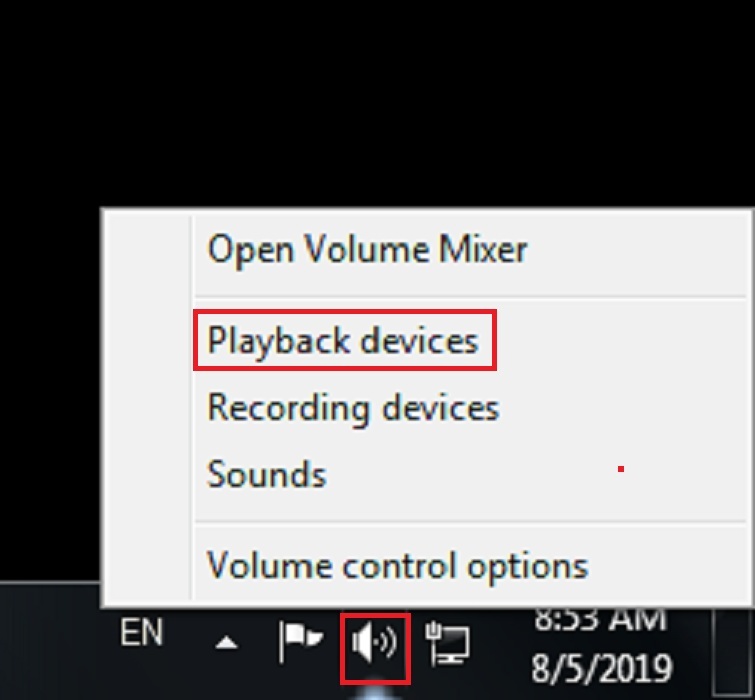 Đầu tiên, bạn bấm chuột phải vào biểu tượng âm lượng một lần nữa rồi chọn Playback devices.