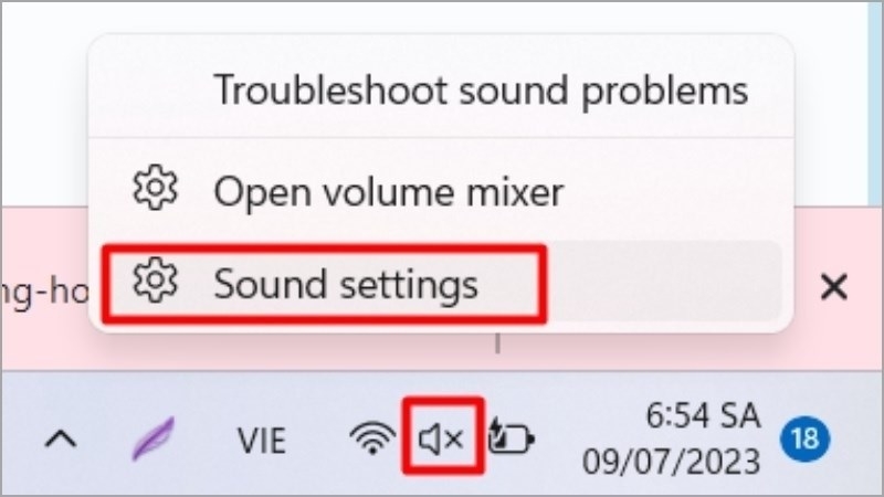 Bước 2: Đối với trường hợp bạn đã điều chỉnh volume ở mức đủ nghe nhưng vẫn không có âm thanh. Lúc này, hãy click chuột phải lên biểu tượng Loa và nhấn vào tùy chọn Sound Settings.