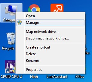 Bước 1: Bạn nhấn chuột phải vào biểu tượng Computer chọn tới Manage