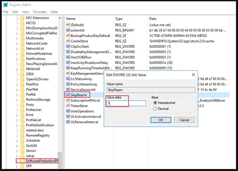Bước 4: Tạo key mới với tên SkipRearm, kiểu DWORD và giá trị 1