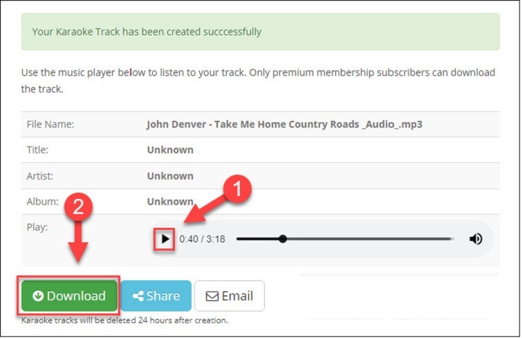 - Nếu hài lòng, nhấn "Download" để tải file MP3 về máy. File sẽ được lưu với tên gốc kèm hậu tố như "-karaoke".