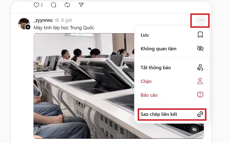 Bước 1: Sao chép liên kết video Threads tương tự như trên Android.