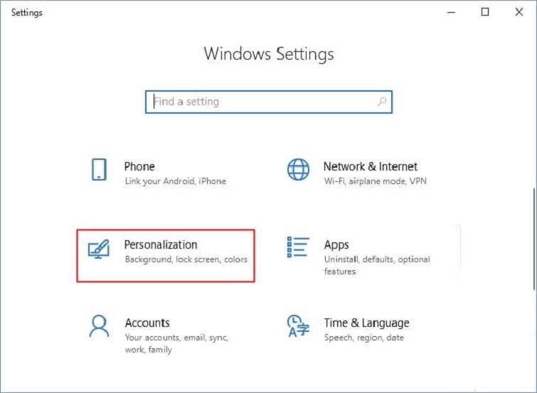 Bước 1: Nhấn tổ hợp phím Windows + I để mở cửa sổ Cài đặt. Hoặc bạn có thể nhấp vào biểu tượng Start => Chọn biểu tượng bánh răng "Cài đặt" => Chọn mục Personalization