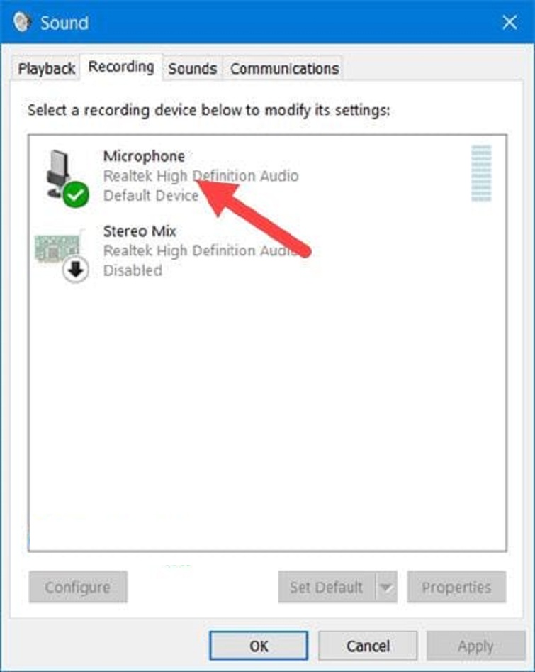 Bước 2: Sau đó, bạn click đúp chuột vào Microphone khi phần thiết lập Sound vừa hiện ra.