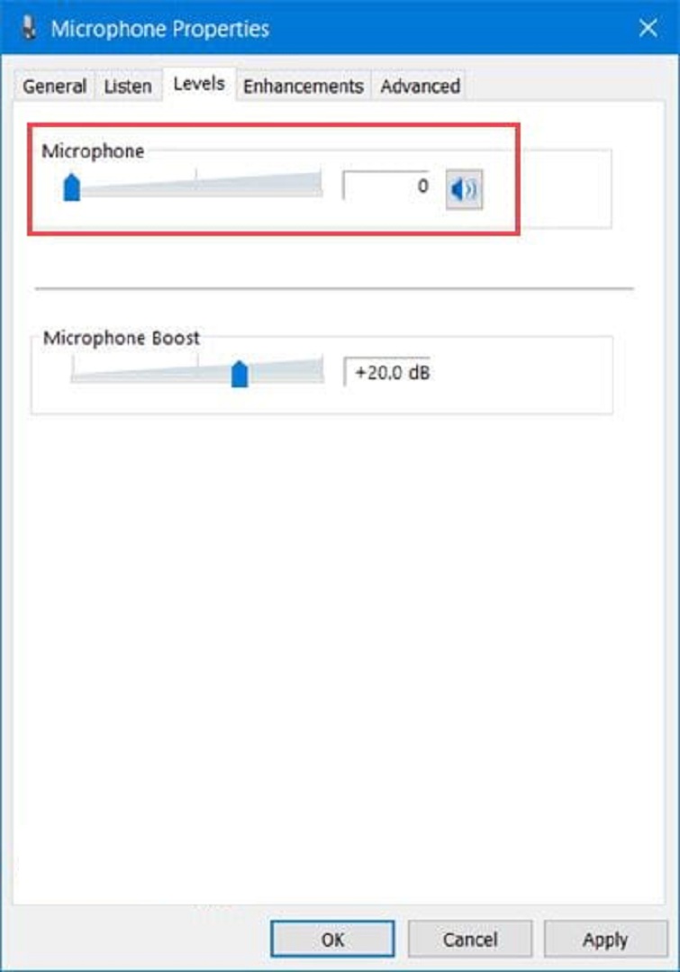 Bước 5: Tiếp theo, chú ý đến phần "Levels". Nếu bạn đã thực hiện đúng hai bước trước đó, thì phần này sẽ ảnh hưởng trực tiếp đến trải nghiệm của bạn. Nếu bạn cảm thấy âm thanh ghi được quá nhỏ, bạn có thể giảm mức âm lượng xuống; ngược lại, nếu âm thanh quá to, bạn có thể giữ mức âm lượng ở mức mong muốn. Điều này giúp điều chỉnh cấu hình microphone để đảm bảo rằng âm thanh được ghi lại với chất lượng và âm lượng mong đợi.