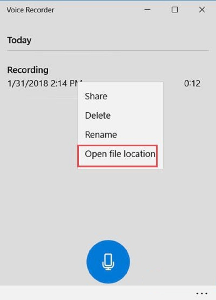 Bước 5: Sau khi đã dừng lại xong, bạn click vào file vừa ghi âm rồi chọn vào mục open file location.