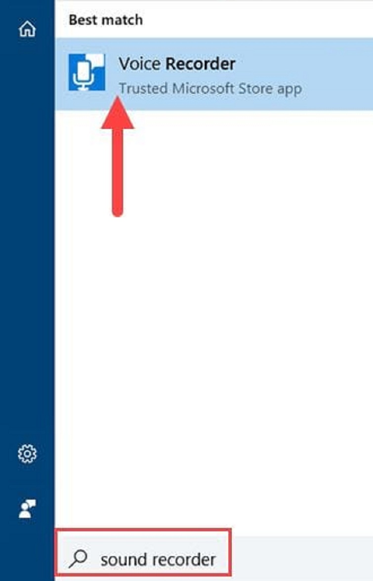 Bước 1: Trước tiên, hãy mở Start Menu, sau đó sử dụng chức năng tìm kiếm để định vị ứng dụng Sound recorder. Tiếp theo, khởi chạy ứng dụng này bằng cách nhấp vào kết quả tìm kiếm. (Chú ý rằng Sound Recorder thường được cài đặt sẵn trong hệ thống, nên không cần phải lo lắng về việc kiểm tra xem máy tính của bạn đã cài đặt ứng dụng này hay chưa).