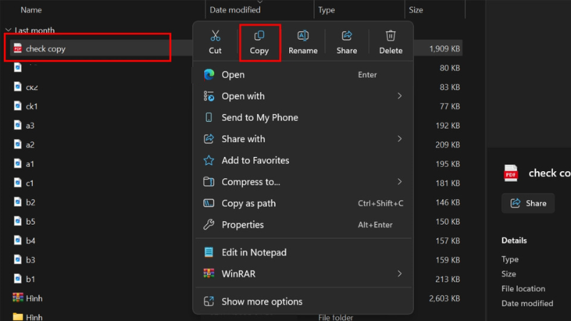 Bước 2: Sao chép file cần truyền vào USB (sử dụng File Explorer trên Windows hoặc Finder trên macOS).