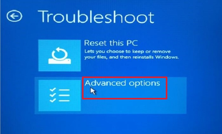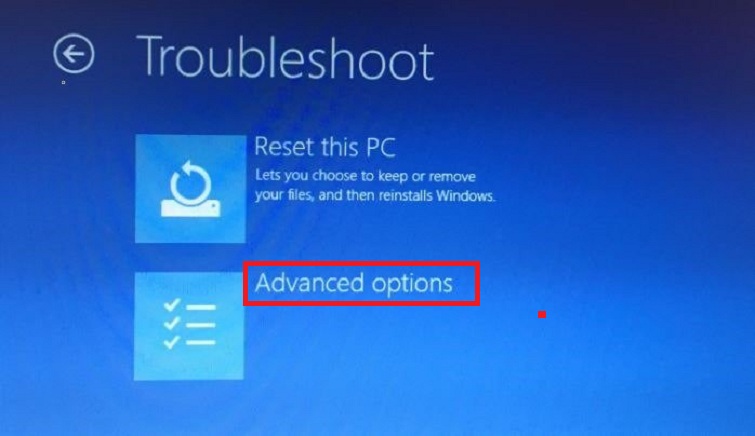 Bước 3: Tiếp theo, ngay trên màn hình Troubleshoot, bạn nhấn chọn vào Advanced options.