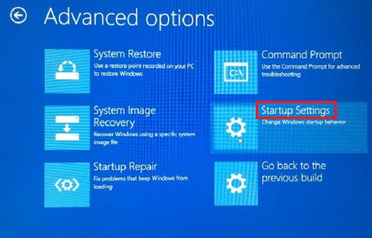 Bước 4: Sau đó, trên cửa sổ Advanced options, bạn nhấn chọn vào Startup settings.