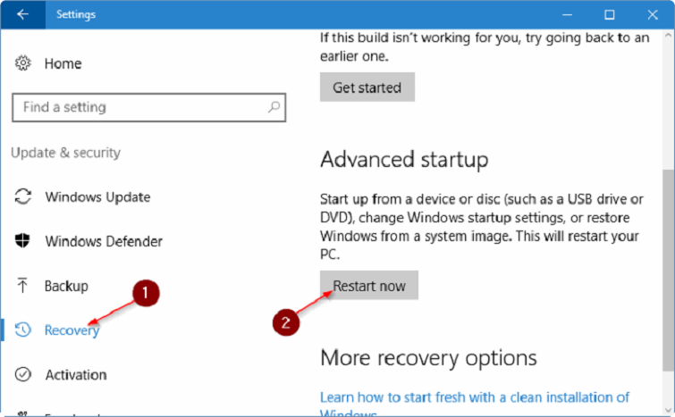 Bước 2: Tại mục Advanced startup, các bạn click chuột chọn Restart now để tiến hành khởi động lại máy tính.