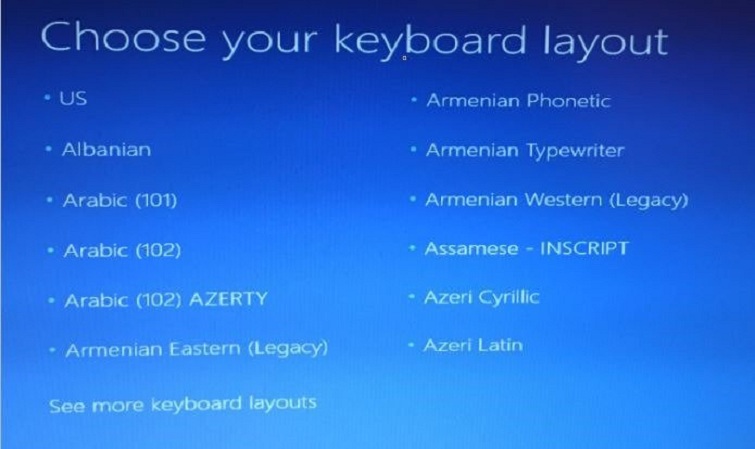 Bước 2: Cho đến khi nào bạn thấy trên màn hình xuất hiện Choose your keyboard layout, bạn hãy click vào layout để xem màn hình Choose an option.