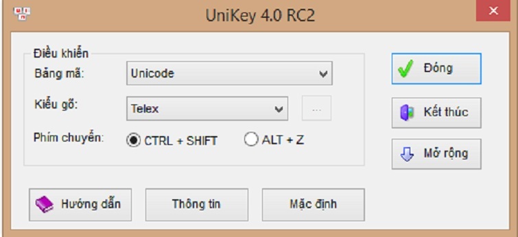 Ở đây, Techcare đang sử dụng kiểu gõ Telex và bảng mã Unicode. Nếu phần mềm của bạn đang ở kiểu gõ khác, hãy chọn như hình dưới đây. Sau khi bạn đã chọn bảng mã và kiểu gõ, bạn lần lượt nhấn nút "Đóng" >> Nhấn tổ hợp phím ctrl+shift để chuyển sang chế độ gõ tiếng Việt trên máy tính thành công!