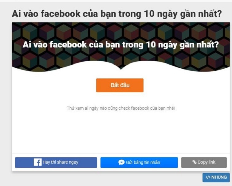 Hiện nay, trên internet xuất hiện nhiều ứng dụng và tiện ích quảng cáo rằng chúng có thể giúp bạn xem ai đã truy cập trang Facebook cá nhân trong 10 ngày gần đây. Những công cụ này thường có tên gọi hấp dẫn như “Ai vào Facebook của bạn?” hay “Ai âm thầm theo dõi bạn?”. Tuy nhiên, liệu chúng có thực sự đáng tin cậy?