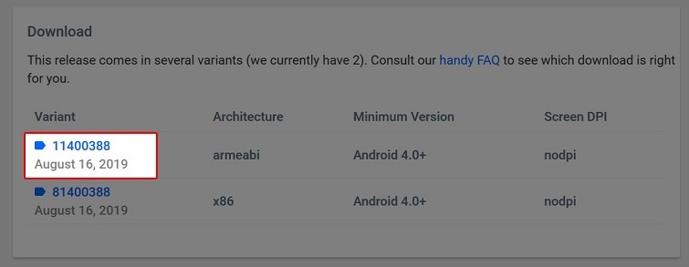 - Tại phần Download, bạn hãy chọn vào dãy số có màu xanh. Tiếp theo, bạn nhấn vào nút Download APK. Vậy là Zalo APK đã được tải xuống máy tính của các bạn.