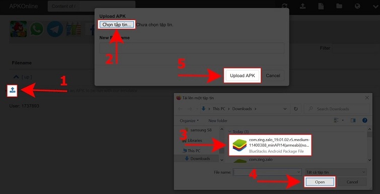 - Upload Và Chạy: Trong giao diện upload, kéo thả file APK hoặc chọn từ máy. Nhấn "Upload APK" rồi "Run APK". Quá trình khởi động mất 1-2 phút tùy kết nối.