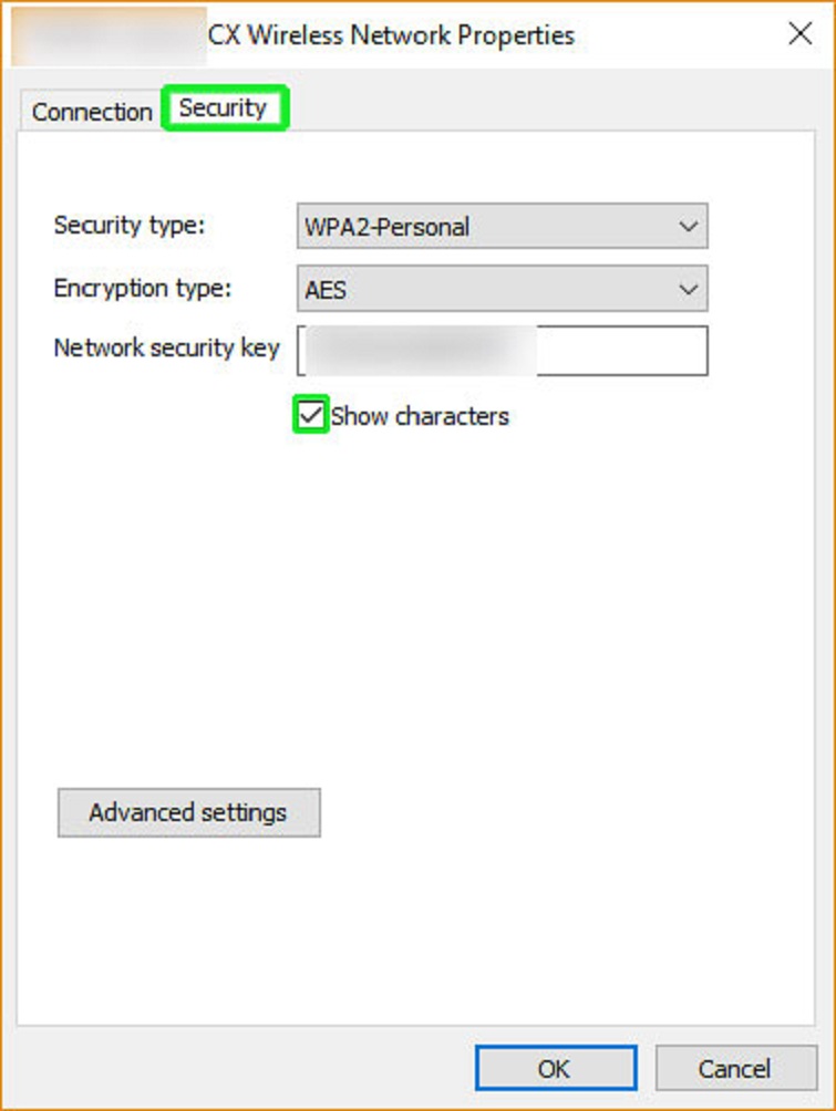 Bước 5: Bạn tiếp tục nhấn vào tab ‘Security’ trong cửa sổ bật lên xuất hiện, rồi tiến hành chọn hộp kiểm ‘Show characters’.
