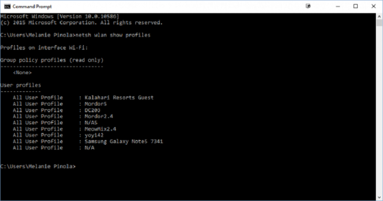 Bước 2: Để hiển thị danh sách các kết nối Wi-Fi mà các bạn đã kết nối gần đây, bạn hãy chạy lệnh:
