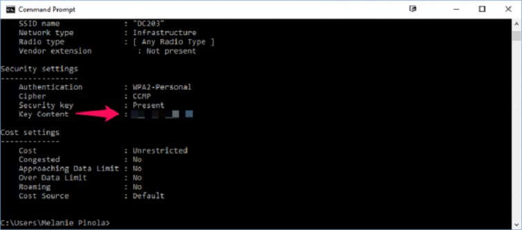 Bước 4: Bạn hãy tìm dòng Key Content để thấy được mật khẩu WiFi cho mạng WiFi mà bạn đang muốn tìm.