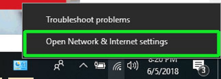 Bước 1: Trước hết, di chuột và nhấp chuột phải vào biểu tượng Wi-Fi ở góc dưới cùng bên trái của thanh taskbar. Sau đó, chọn ‘Open Network and Internet Settings’.