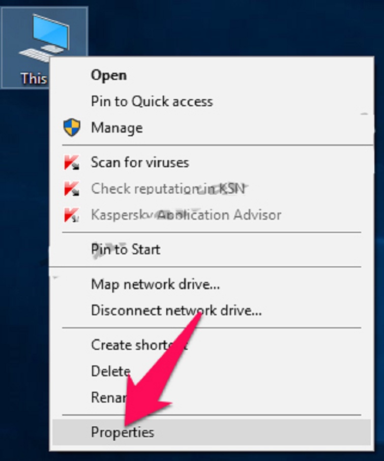 Bước 1: Trước tiên, bạn nhấn chuột phải lên biểu tượng My Computer rồi sau đó chọn Properties.