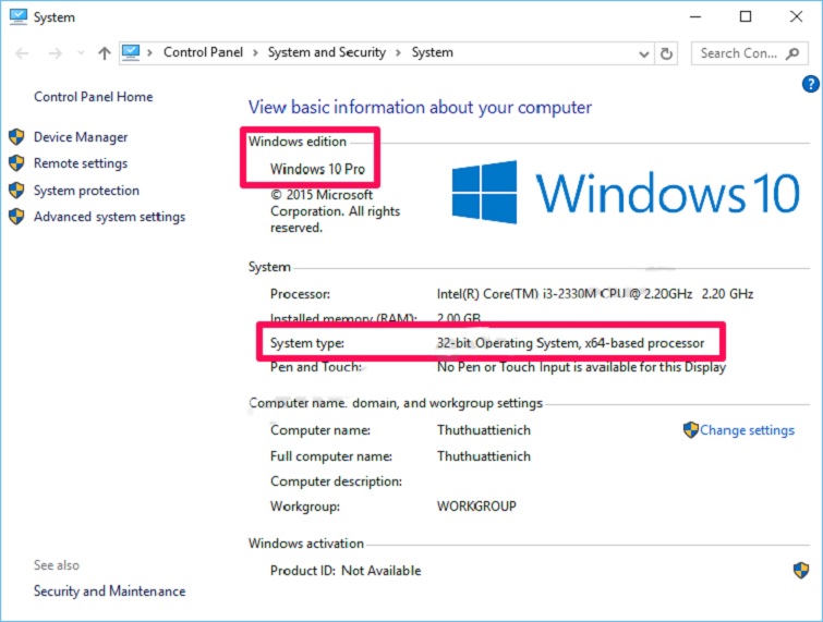 Bước 2: Tiếp theo, bạn chỉ cần xem phiên bản Windows (Edition) cùng với kiểu hệ điều hành (System type).