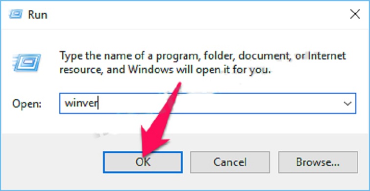 Bước 1: Đầu tiên, bạn nhấn tổ hợp phím Windows + R, sau đó nhập lệnh "winver" vào hộp thoại Run. Tiếp theo, bạn nhấn nút OK hoặc phím Enter để thực hiện lệnh.