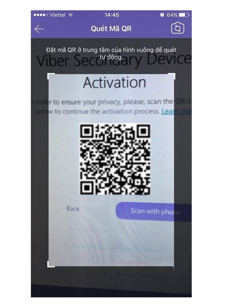Bước 4: Tại bước này, bạn sẽ nhận thấy có yêu cầu để quét mã QR từ phiên bản mới nhất của ứng dụng Viber.
