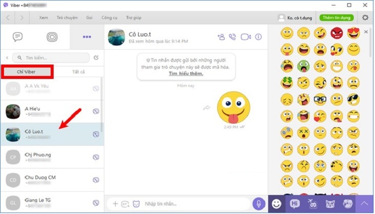 Khi phần danh bạ xuất hiện, nếu bạn muốn nhắn tin hay gọi điện cho bạn bè đang sử dụng Viber, bạn chọn vào phần Chỉ Viber. Tiếp theo, bạn chọn vào bạn bè mà mình đang muốn liên lạc.