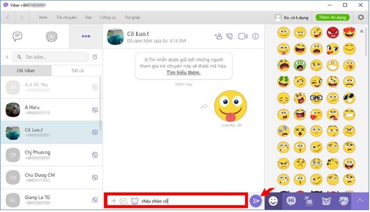 Sau khi chọn tên của bạn bè, khung chat ở giữa sẽ hiển thị thông tin của họ. Để gửi tin nhắn, bạn chỉ cần nhập nội dung vào khung chat và sau đó nhấn Enter hoặc biểu tượng gửi để gửi đi tin nhắn.