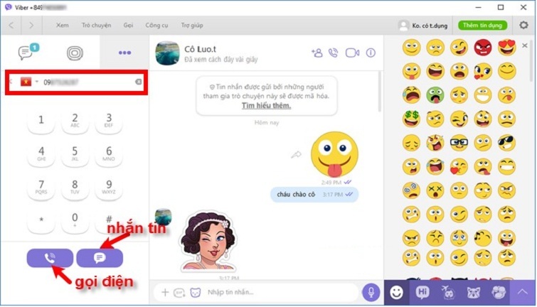 Sau khi nhập số điện thoại bạn muốn liên lạc, để thực hiện cuộc gọi thoại, bạn chọn biểu tượng gọi. Nếu muốn gửi tin nhắn, bạn chọn biểu tượng nhắn tin như được minh họa trong hình bên dưới.