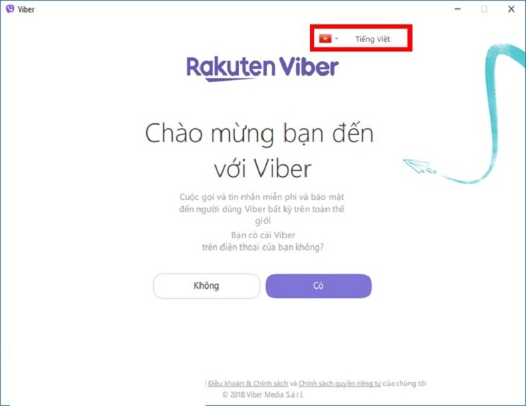 Bước 3: Khi quá trình cài đặt đã được kết thúc, giao diện Welcome to Viber sẽ xuất hiện. Bạn nên chọn ngôn ngữ Tiếng Việt để dễ sử dụng hơn. Ở phía dưới xuất hiện câu hỏi: Bạn có cài Viber trên điện thoại của bạn không? Nếu bạn muốn sử dụng thì chọn Có, nếu không thì bạn chọn Không.